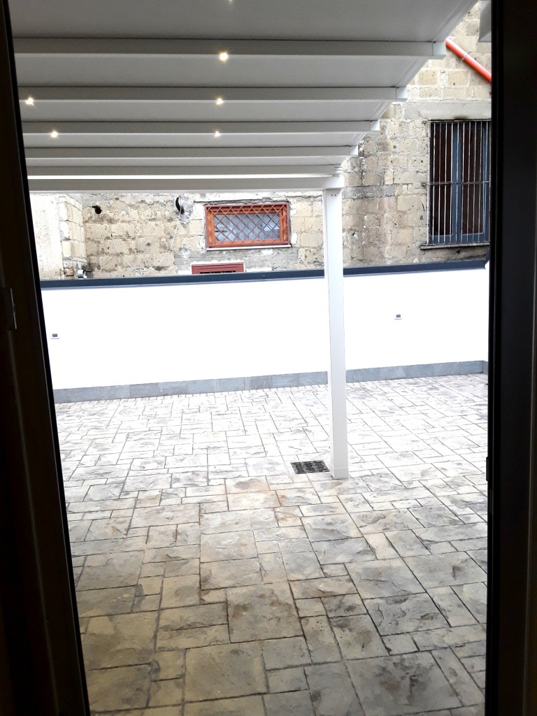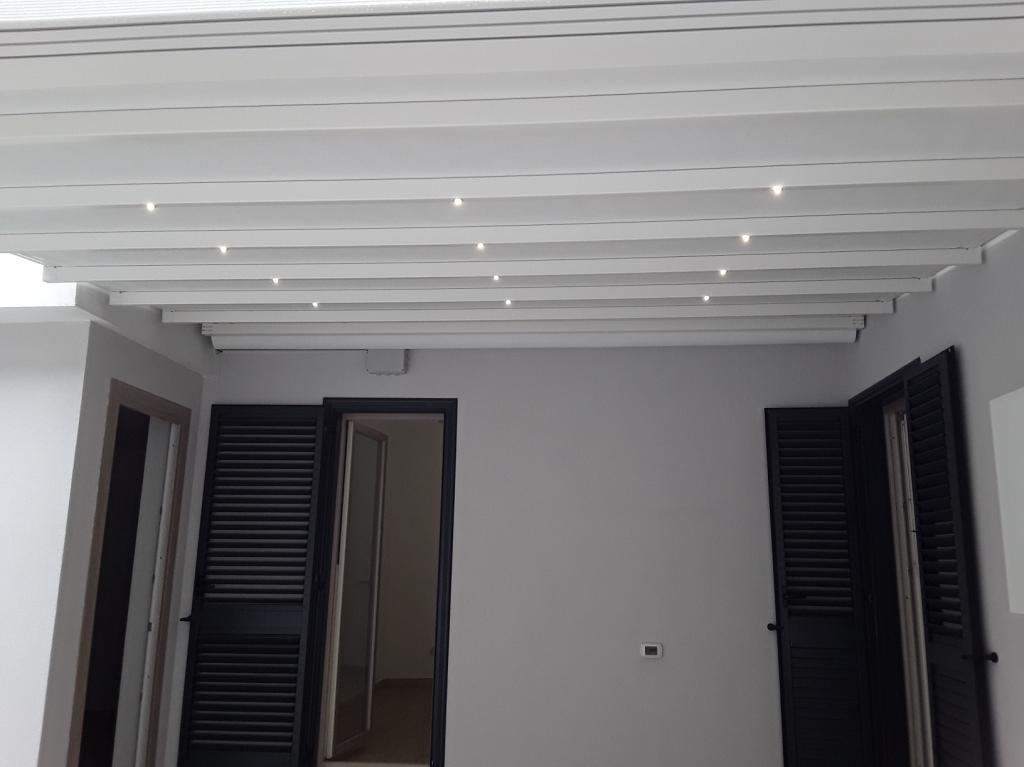 Dalla zona living si accede alla terrazza interamente rifinita e dotata di modernissima tenda elettrificata e con luci led incorporate. Dalla terrazza , si accede ad un altro ambiente dotato di ripostiglio, utilizzabile come terza camera, studio, lavanderia, o qualsivoglia altro uso.